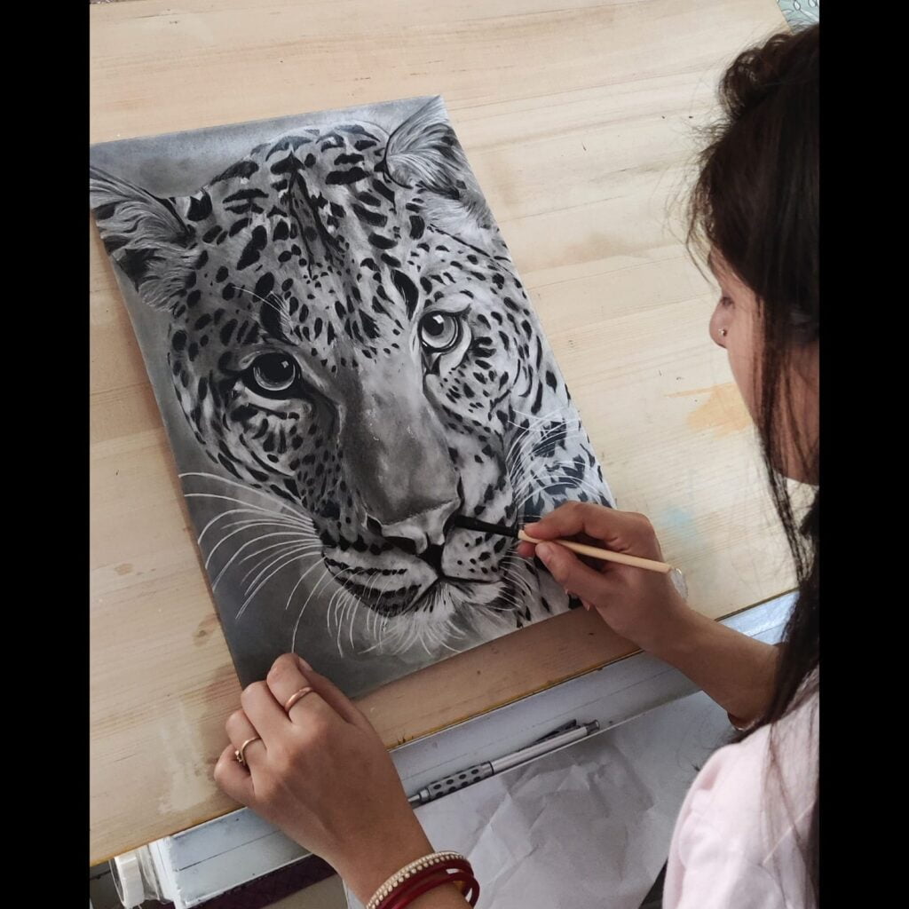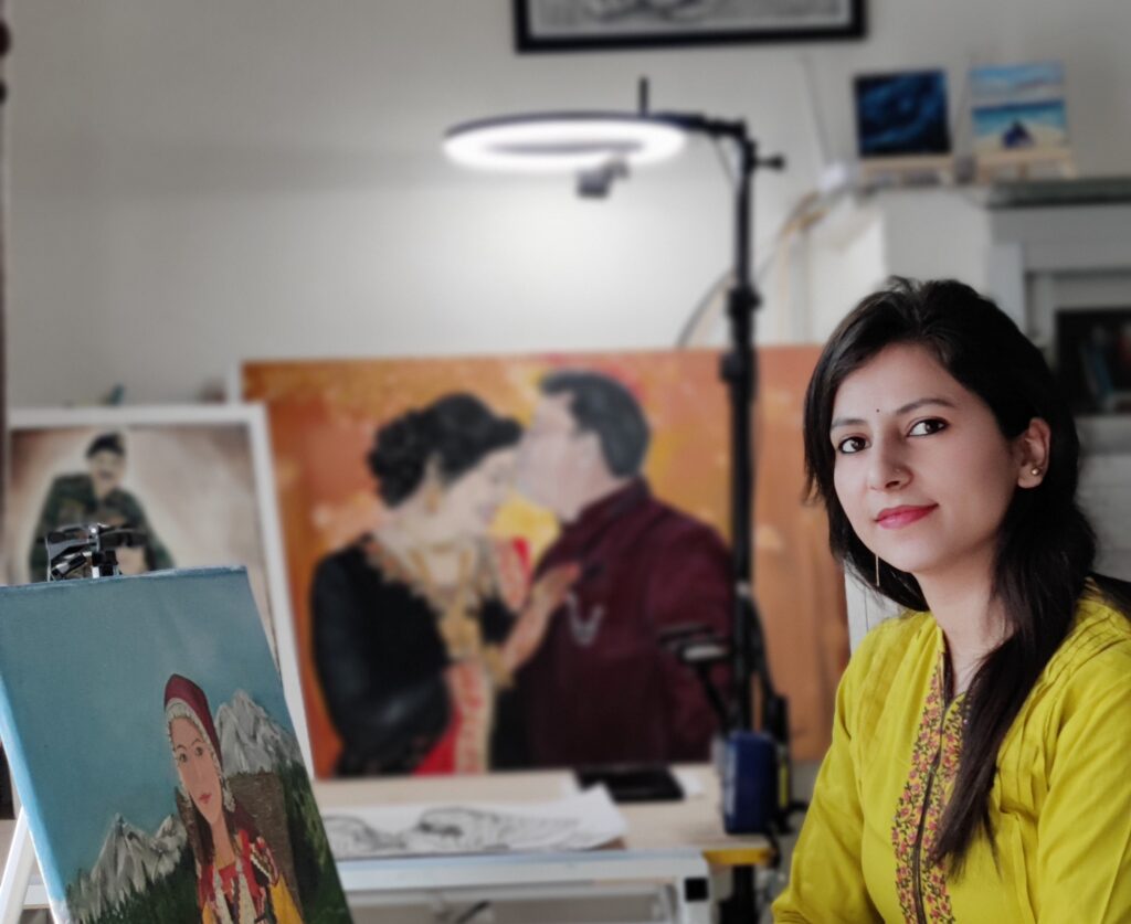 Swati Chambial interprets the sights and sounds of the world around her into radiant art. In a career spanning over a decade, she has always painted the memories that have left an indelible mark on her. These inspired memories, impressions and images of beauty are conveyed using acrylics on canvas and charcoal sketches in intense, mellow, and intricate gradations of a multitude of emotions. Swati’s art is rooted in her connection to the earth, as is evident in the textures she creates. Swati’s primary artistic inspiration today is the beauty of the mountains, with its changing skies, sunsets, crisp air and varied seasons. She translates her experiences, spirituality, and self-discovery into a unique and energetic visual language, camouflaging the images in her mind’s eye with abstraction and surrealism. Swati has participated in several group shows across India and was a participant in the first Himachal Art Fair.